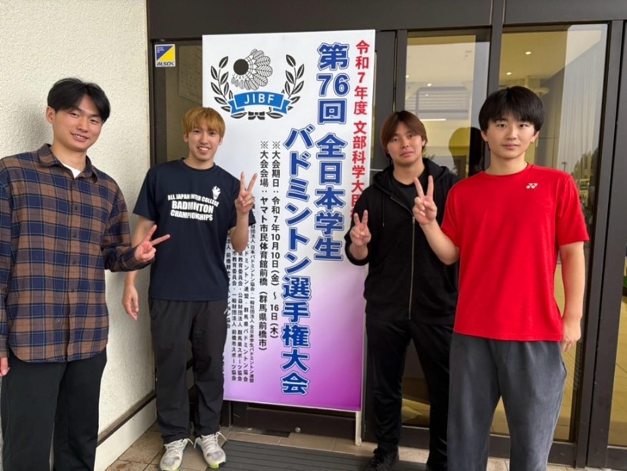 10月10日から10月16日に群馬県で開催されました、全日本学生バドミントン選手権大会に個人戦ダブルスにおいて男子2ペアが出場しました。