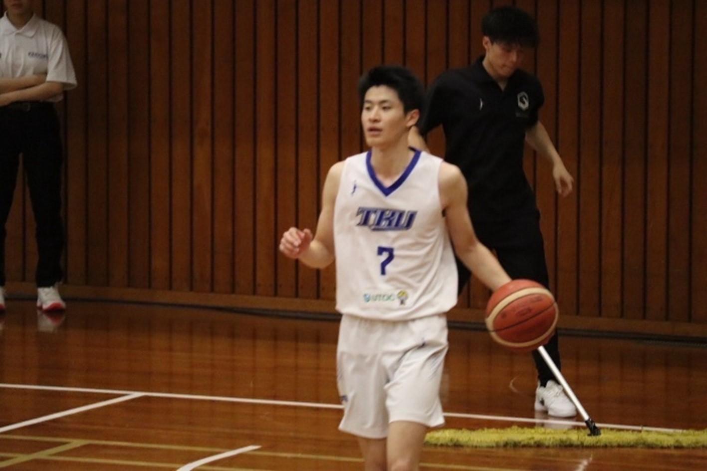 翌31日は國學院大学との試合でした。こちらも前日と同じように守りから流れをつくり、23対10で第1クォーターを終えました。ところが後半は相手に連続で得点され、同点に追いつかれる展開に。そんな中、試合終了のブザーと同時に#7中島の3ポイントシュートが決まり、これが決勝点となって76対73で勝利しました。