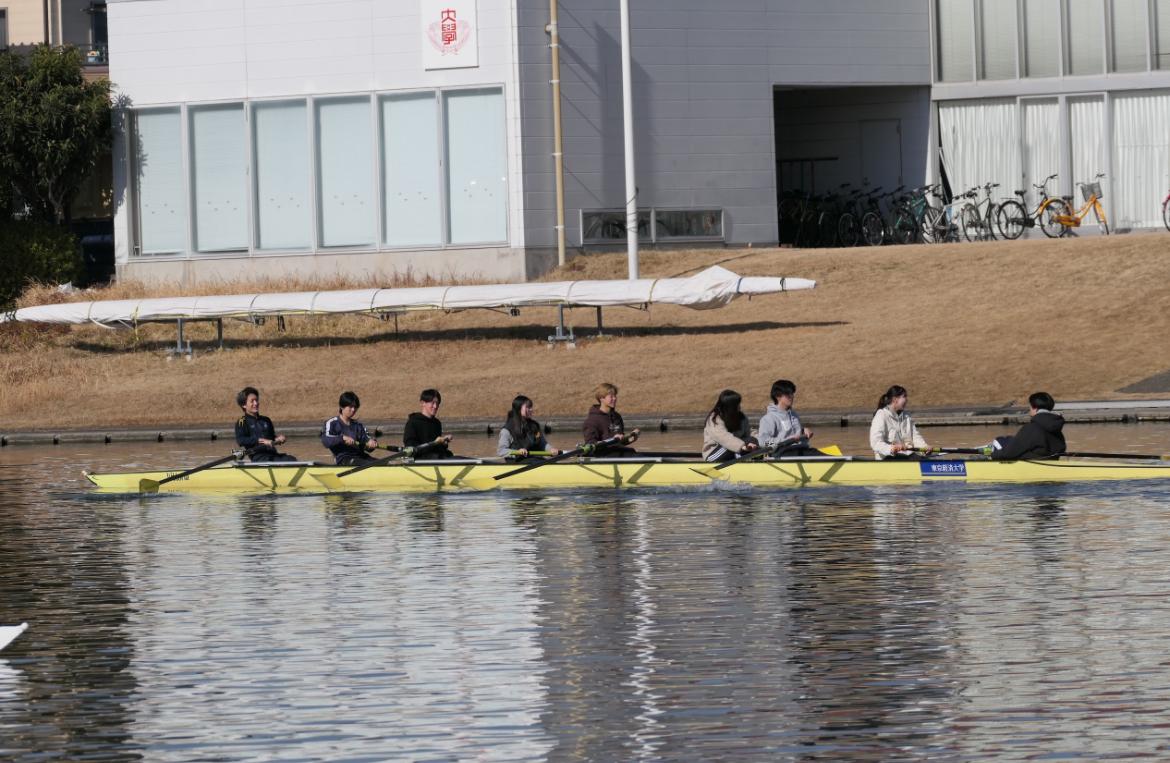 また、17日には毎年恒例の初漕ぎ会を行いました。餅つきやOBの皆さんとエイトでの乗艇を行い、その後マネージャー特製のおでん・豚汁を囲みながら交流しました。新年のスタートにあたり、気持ちを新たにする機会となりました。