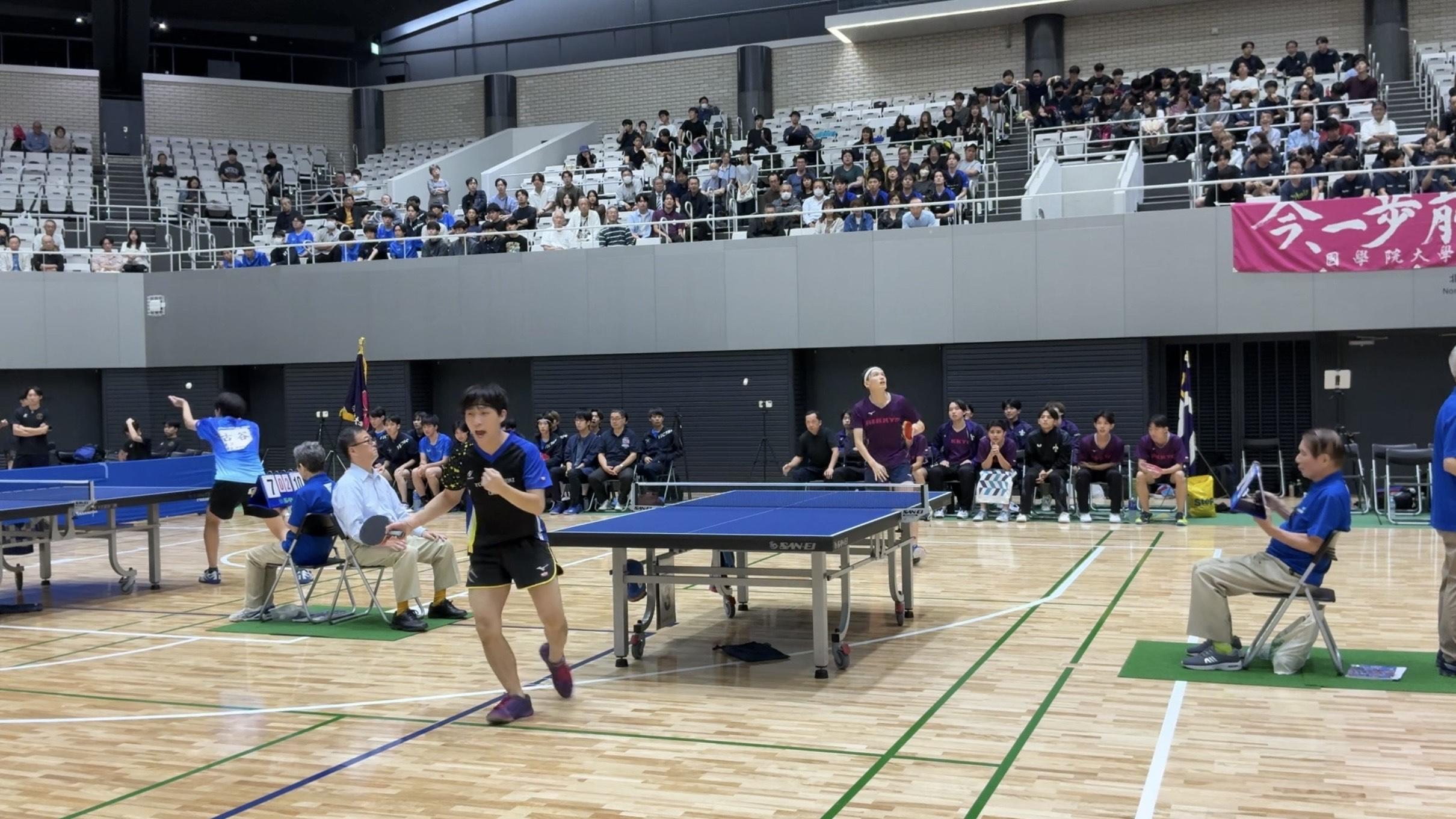 流れが順天堂大学側になっていたこの場面で、3番の池田幸将が見事なカットと会心のドライブを見せつけ3-1で勝利。曇天に光が差す様な1点でした。