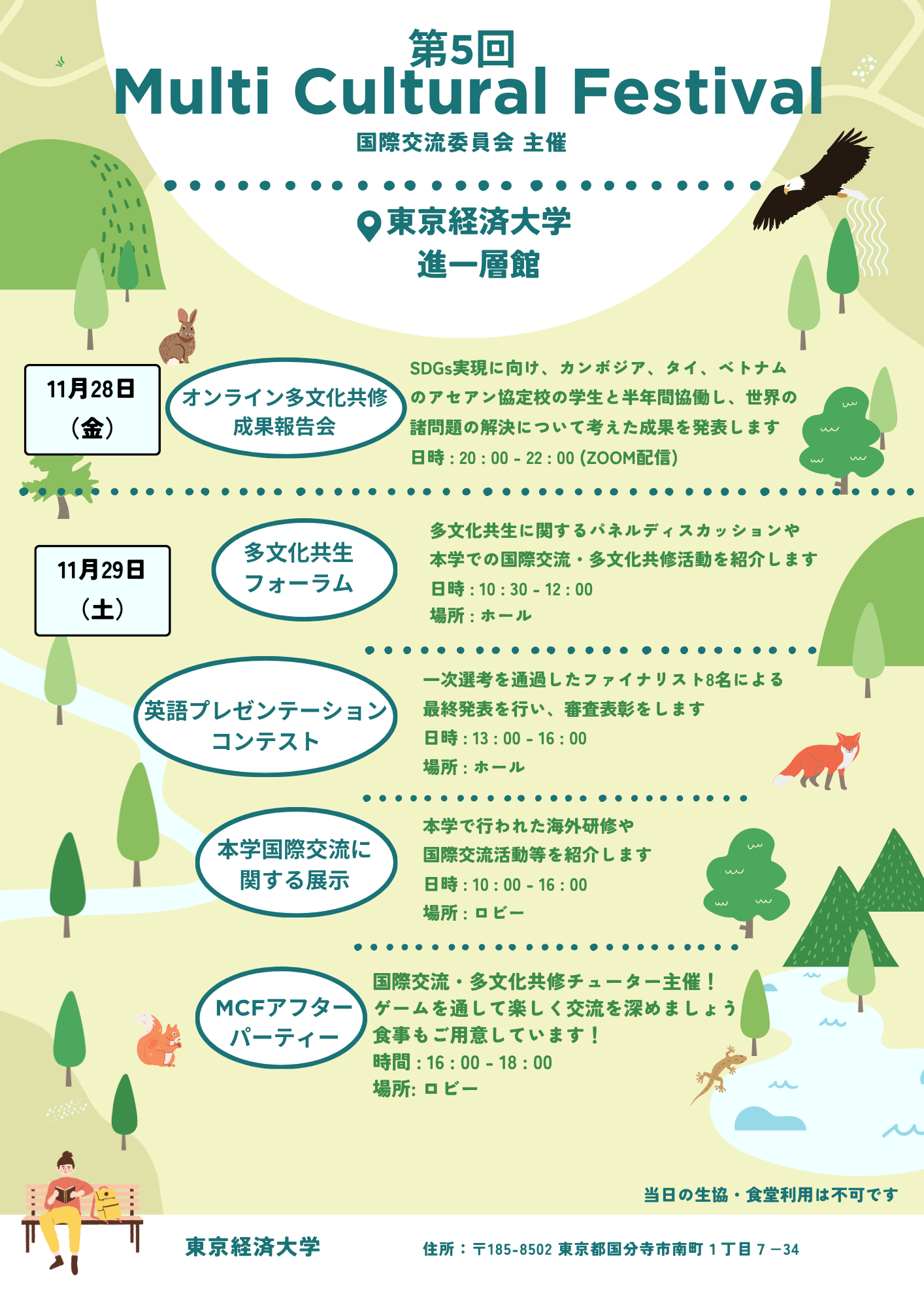 東京経済大学国際交流委員会では、2025年11月28日(金)から29日(土)の2日間に渡り、「第5回Multicultural Festival」を開催します(11/28オンラインのみ、11/29対面・後日オンライン配信)。