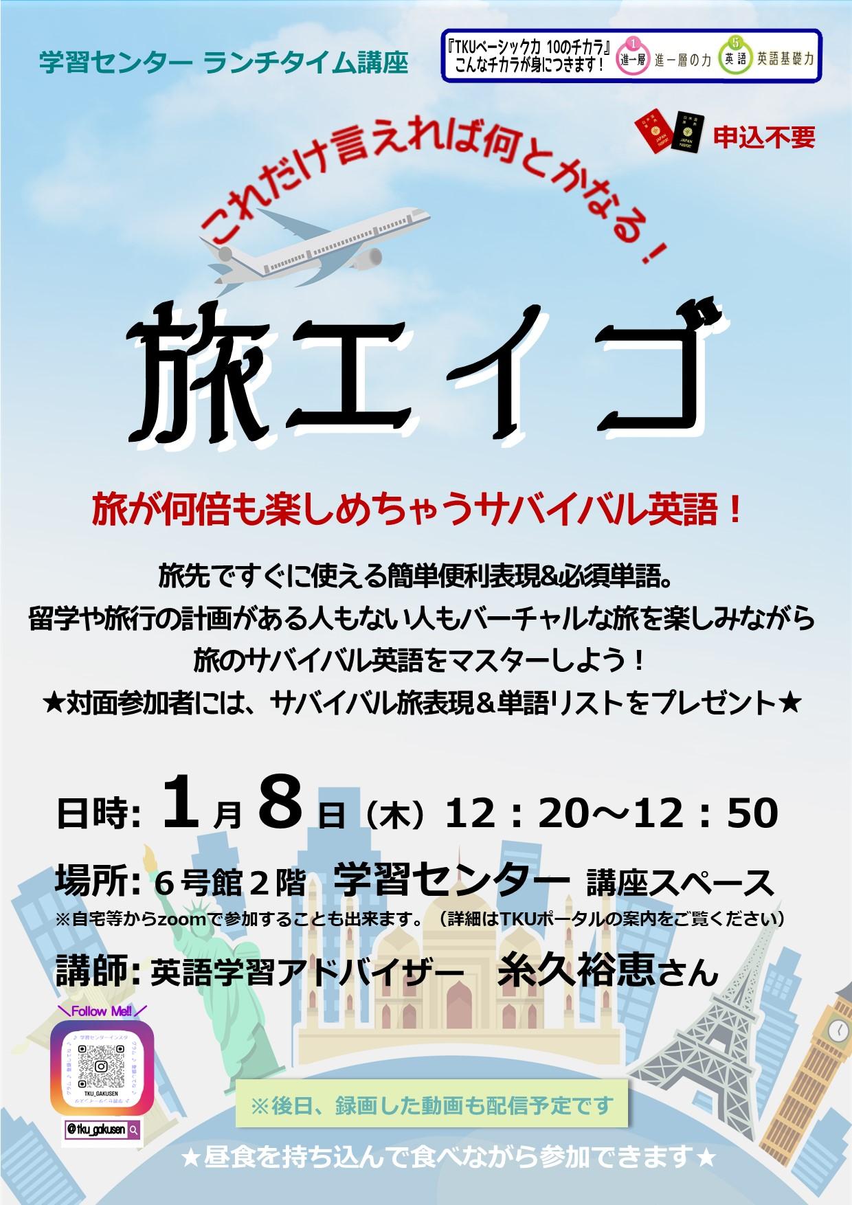 ①旅エイゴ・1月8日(木)12:20~12:50・6号館2階学習センター講座スペース/Zoom
