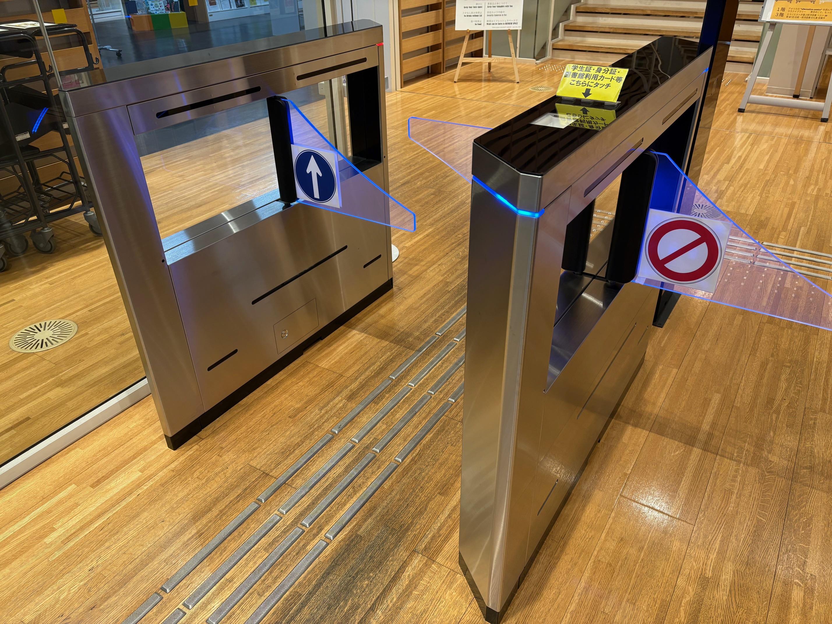 入館する際は、図書館利用証をゲートのリーダーにかざしてください。