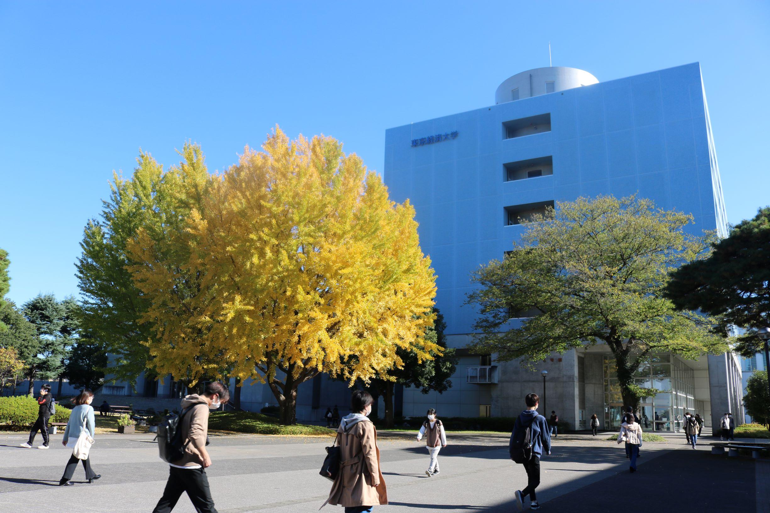 東京経済大学国分寺キャンパス構内中央広場の一角にある大銀杏が、紅葉の見ごろを迎えています。