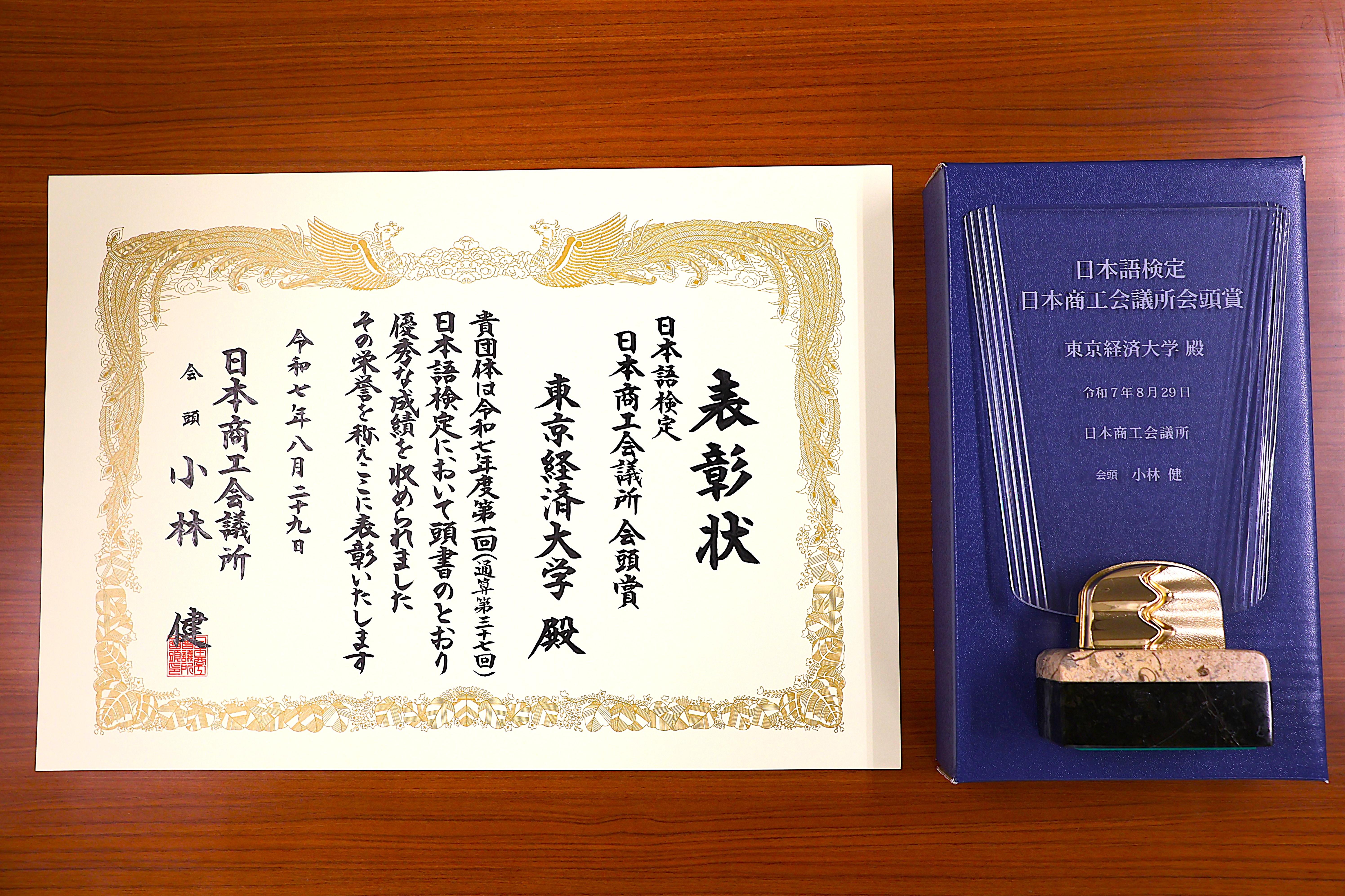 東京経済大学は、令和7年度第1回日本語検定で、日本商工会議所 会頭賞を受賞しました。
