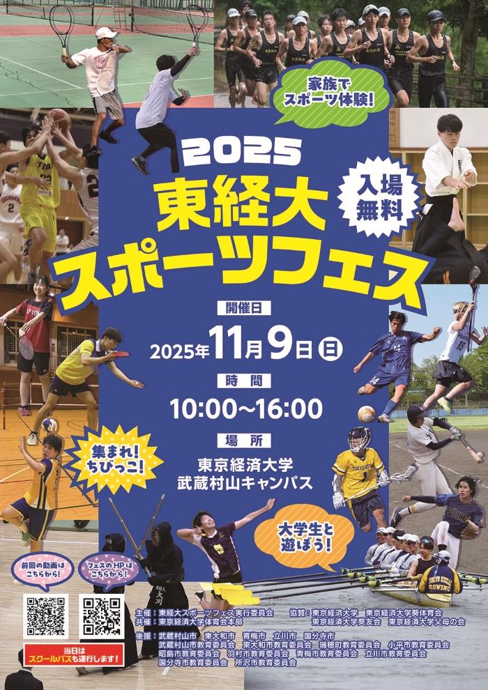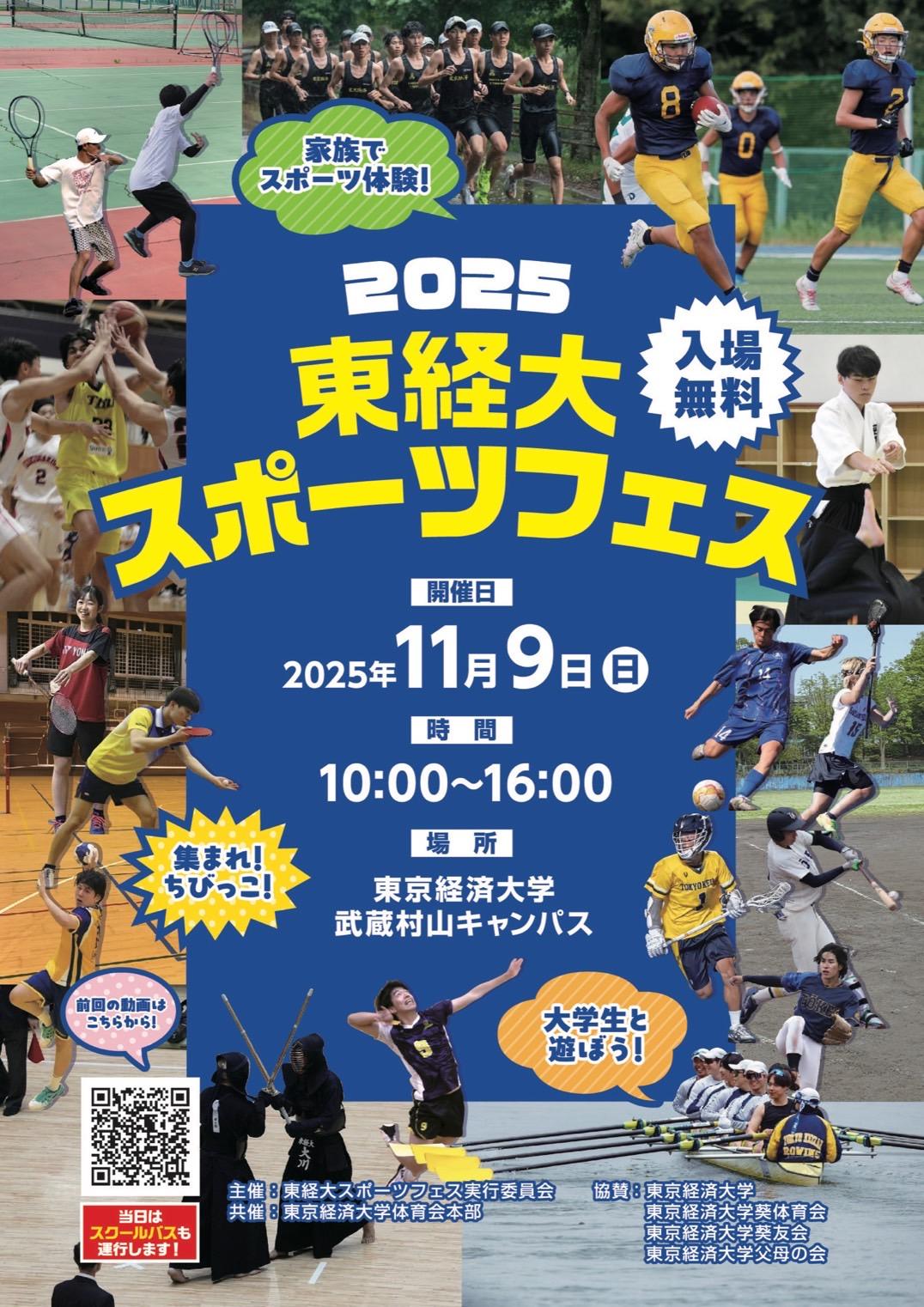 2025年11月9日(日)に、東京経済大学武蔵村山キャンパスで「東経大スポーツフェス」が開催されます。