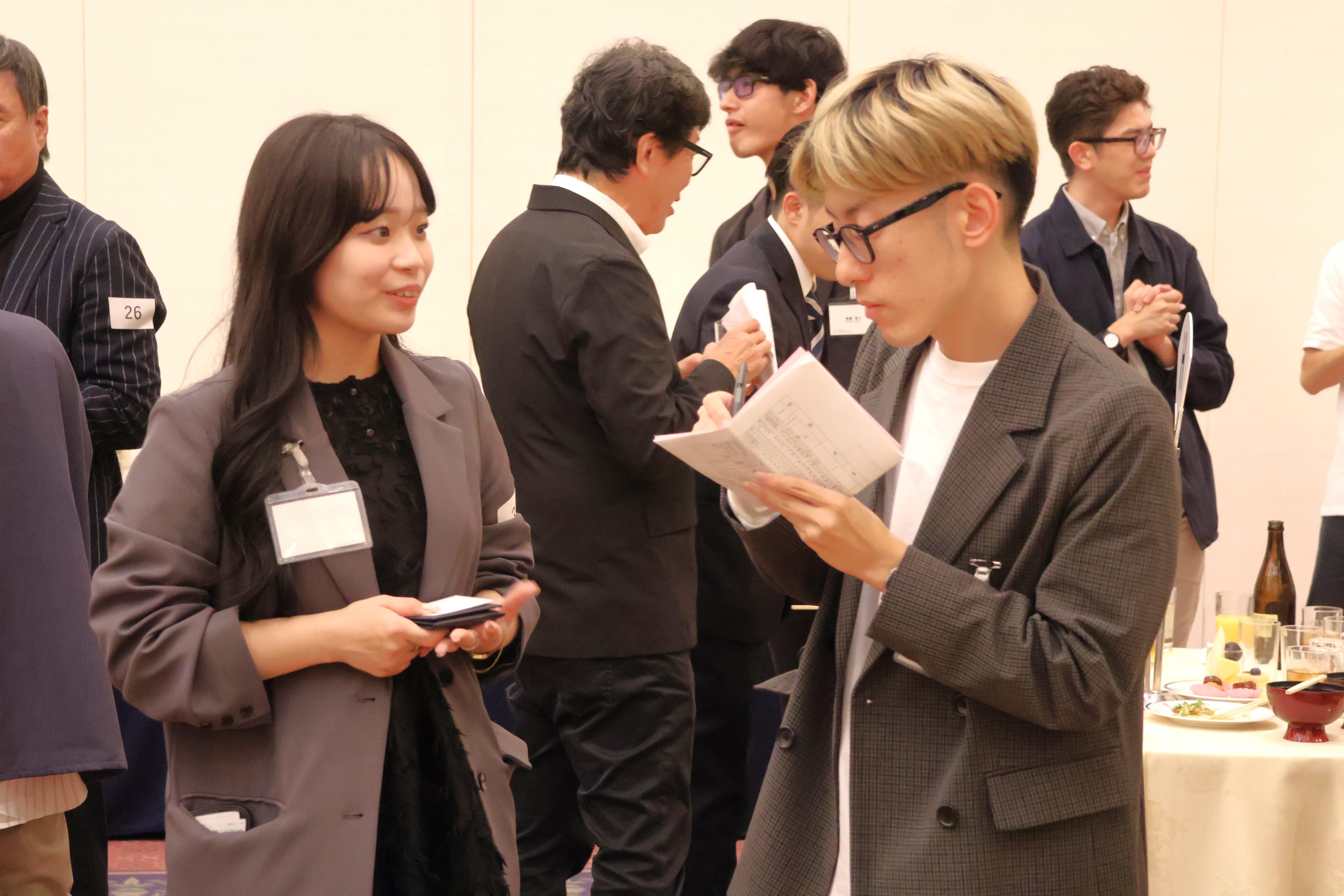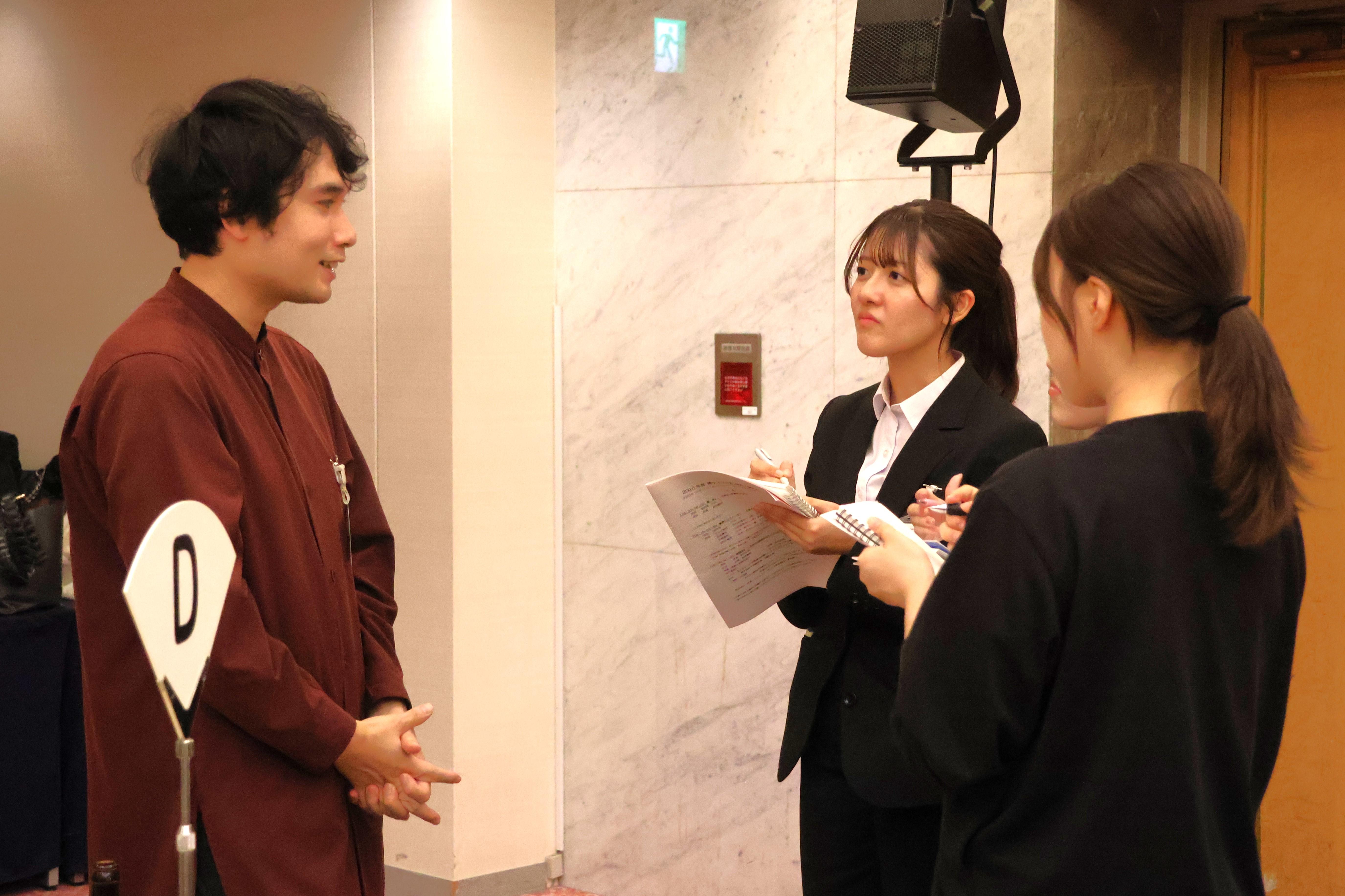 引き続き行われた第二部の懇談会では、学生らが積極的に卒業生に声をかけて、業界や就職活動について、質問をしている様子などがそこここに見られ、会場は学生たちの熱気で包まれていました。