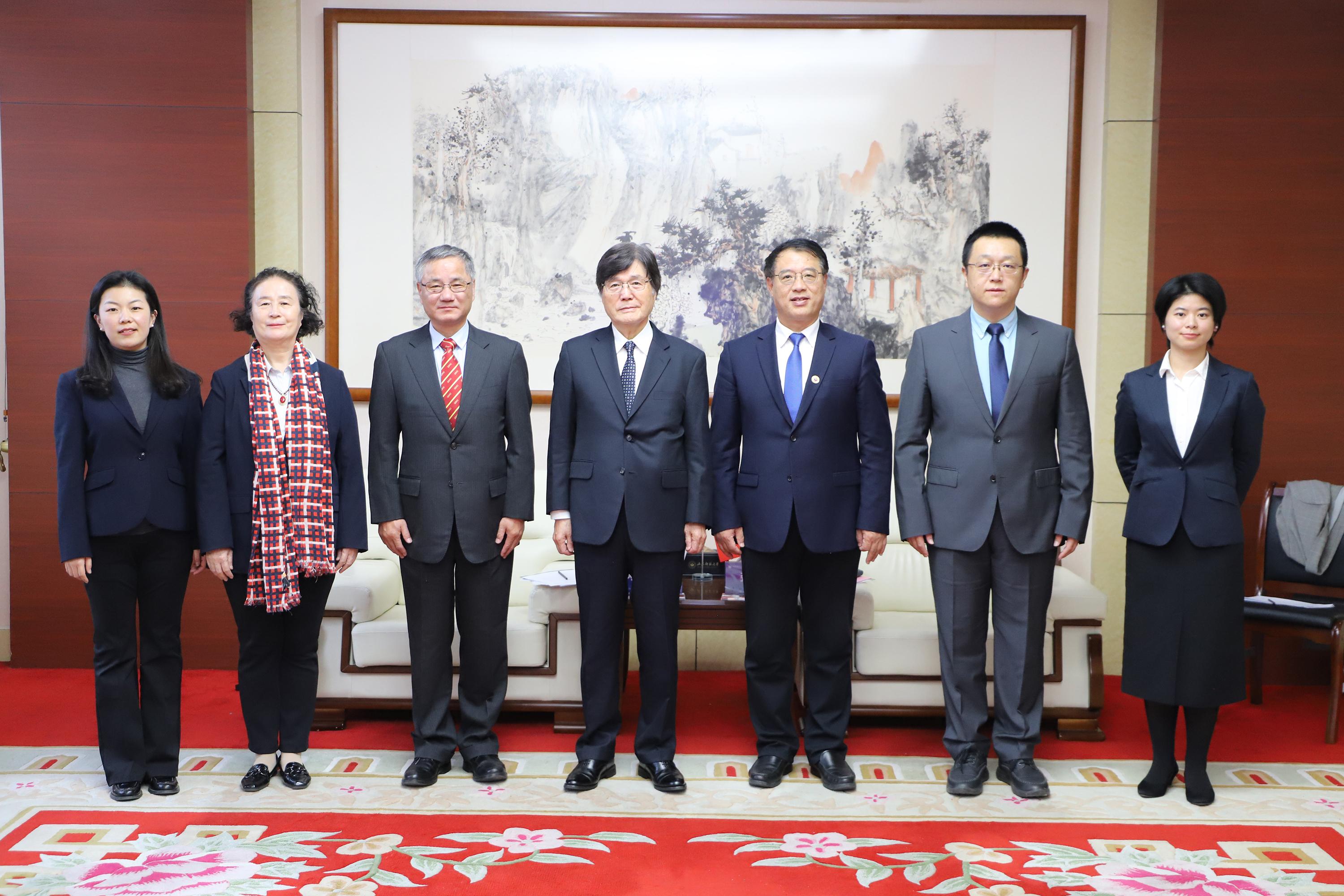 今回の訪問では、山東師範大学の張建(ジャン ジエン)学長をはじめ、日本語学科の教職員とも懇談を行いました。記念行事の「グローバル高等教育協力対話会」では、岡本学長が本学の国際交流の取り組みを中心に紹介しました。