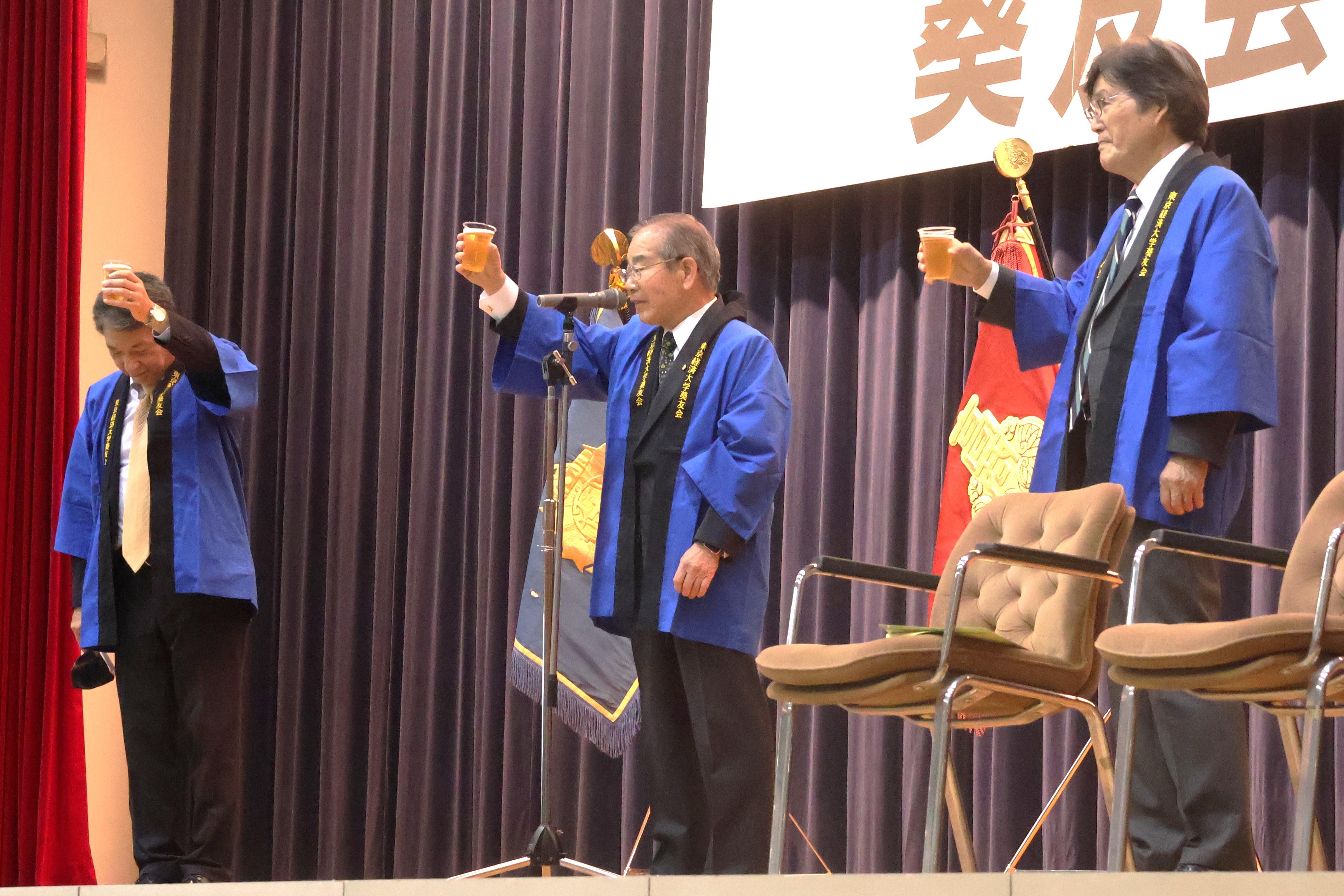 会の冒頭、あいさつに立った岡本英男学長は「今年の10月に東京経済大学は創立125周年を迎えました。葵祭も今回で126回目の開催となり、伝統のある大学祭となっています。今回のホームカミングデーでは初めて会う人にも話しかけて、母校の思い出などの話をして輪を広げてほしい」と語り、集まった卒業生たちを歓迎しました。