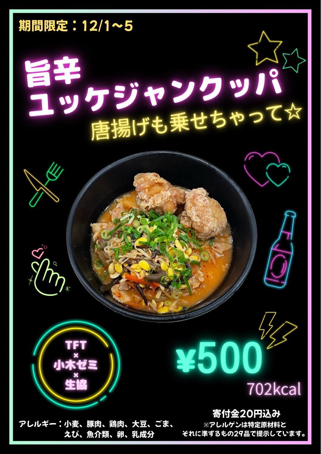 東京経済大学経営学部でマーケティングを学ぶ小木紀親ゼミは「TABLE FOR TWO(TFT)プログラム」としてメニューを考案。それらのメニューが2025年11月24日(月)から12月5日(金)までの間、学生食堂で販売されることになりました。