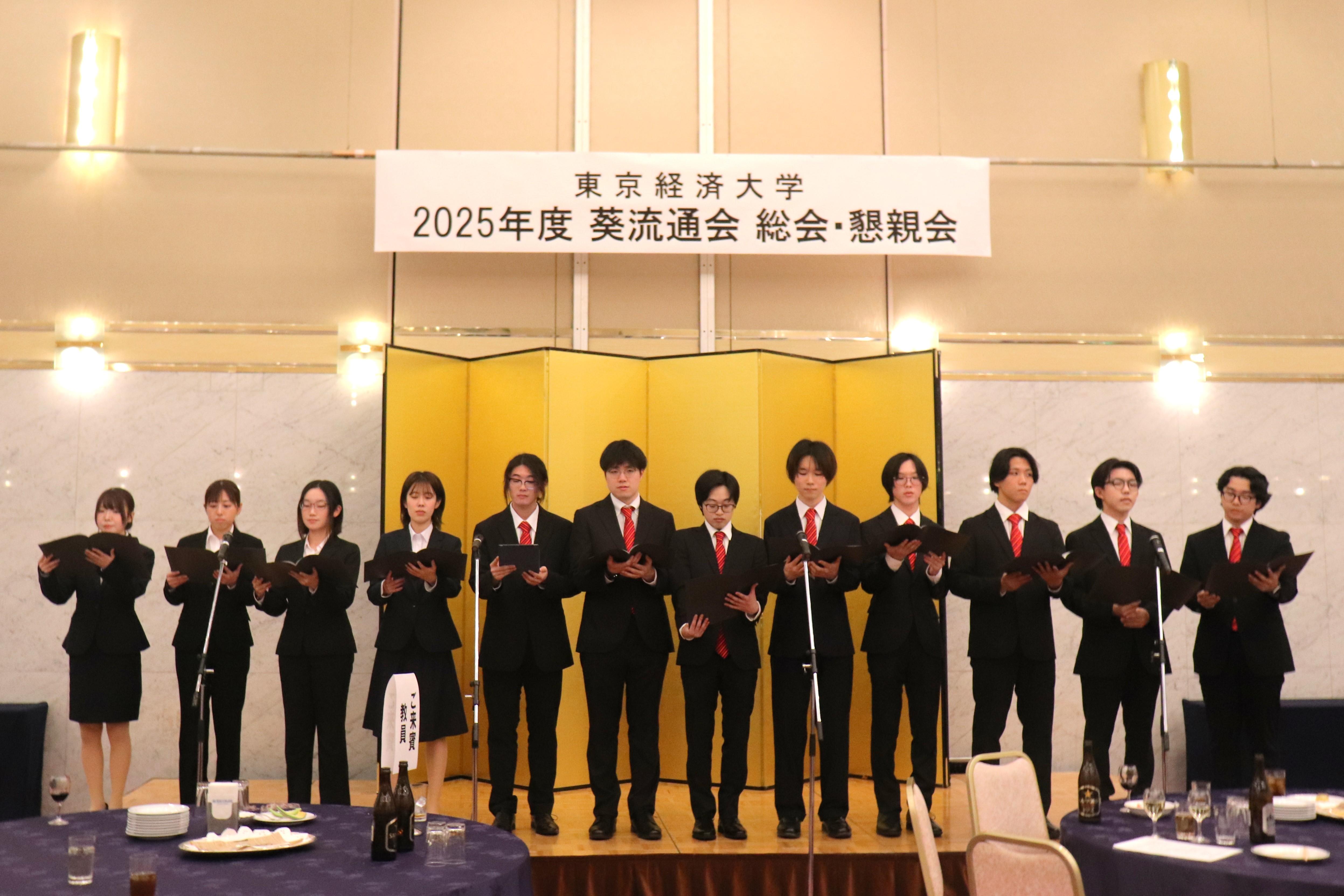 最後に、東京経済大学グリークラブ有志による校歌斉唱が行われ、総会・懇親会を締めくくりました。