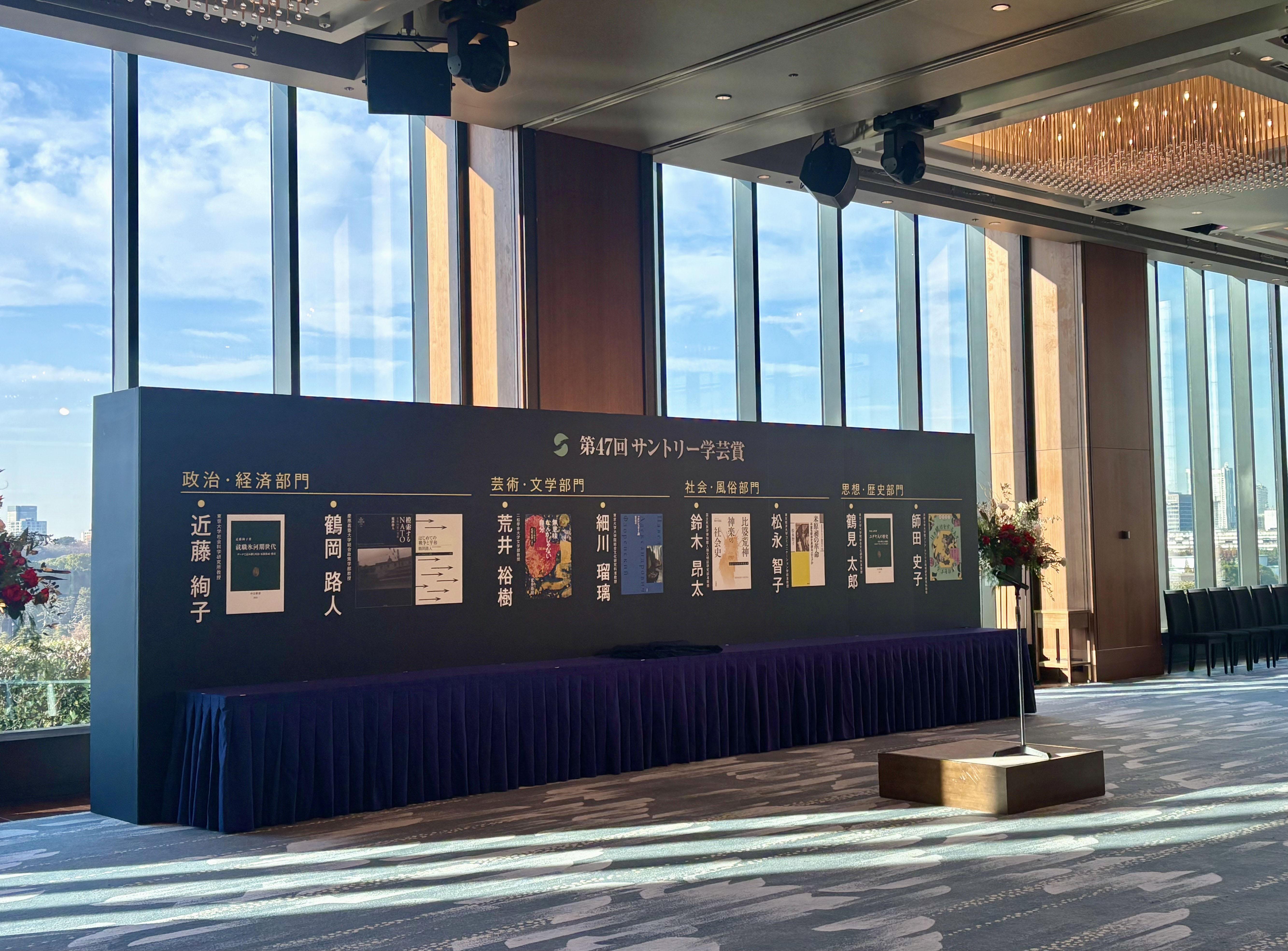 サントリー学芸賞は、広く社会と文化を考える独創的で優れた研究・評論活動を、著作を通じて行った個人に「政治・経済」「芸術・文学」「社会・風俗」「思想・歴史」の4部門で、毎年贈られている賞です。1979年の創設以来、第46回(2024年度)までの受賞者は387名を数え、これらの受賞者の業績は、主題への斬新なアプローチ、従来の学問の境界領域での研究、フロンティアの開拓などの点で高く評価されているということです。