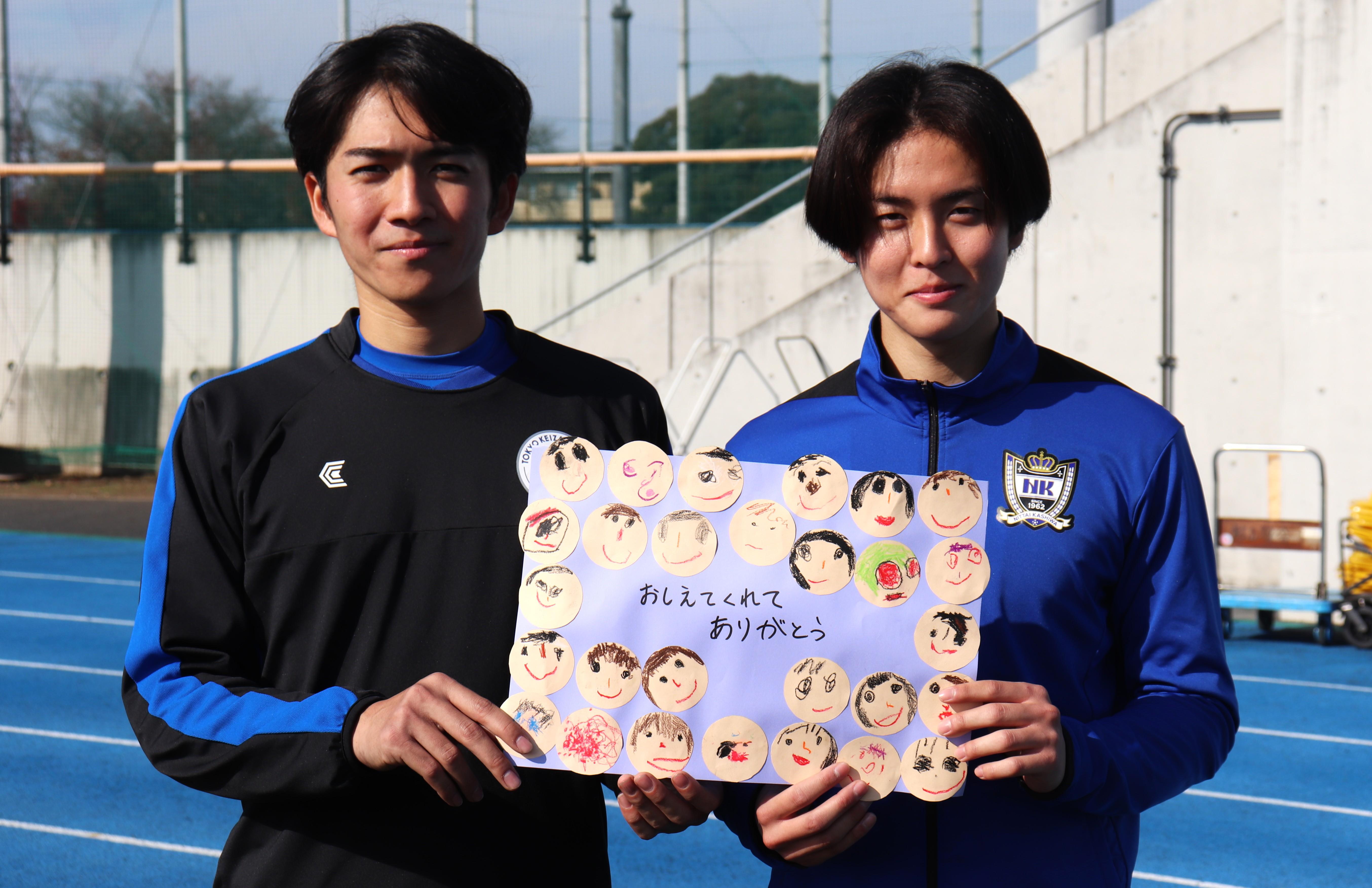 イベント終了時には、サッカー部から少し早いクリスマスプレゼントとしてステッカーが渡されました。また、園児からはサッカー教室のお礼として、感謝の言葉が書かれた色紙が贈られました。