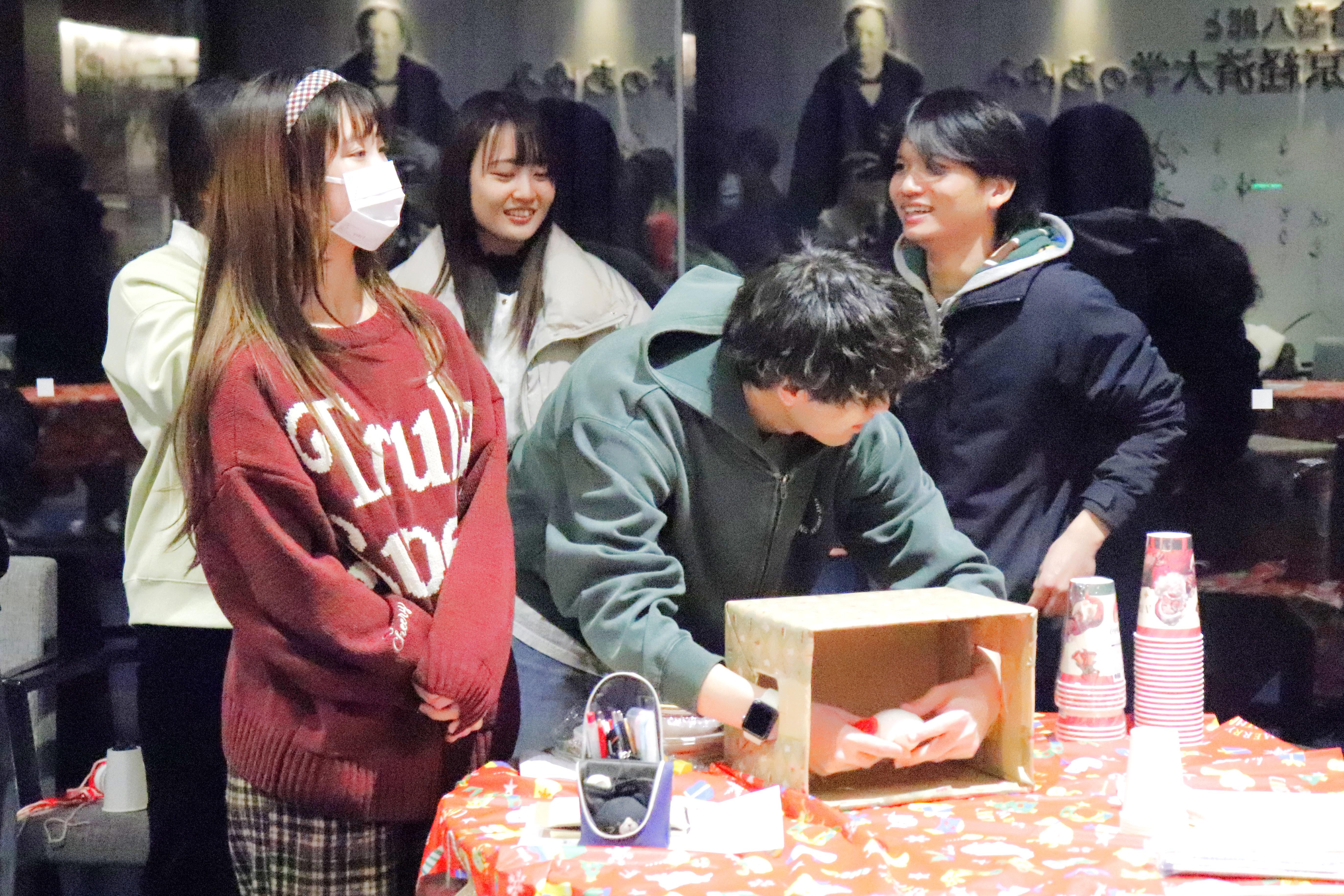 イベントは三部構成で行われ、第一部では参加者が5つのグループに分かれて伝言ゲームや箱の中身当てゲーム、ジェスチャーゲームを行い、チームで協力して景品獲得をめざしました。箱の中身当てゲームでは電球やクリスマスツリー、犬のぬいぐるみなどが用意され、参加者から「難しいけど面白い!」と歓声が上がるなど、イベントは序盤から盛り上がりを見せました。