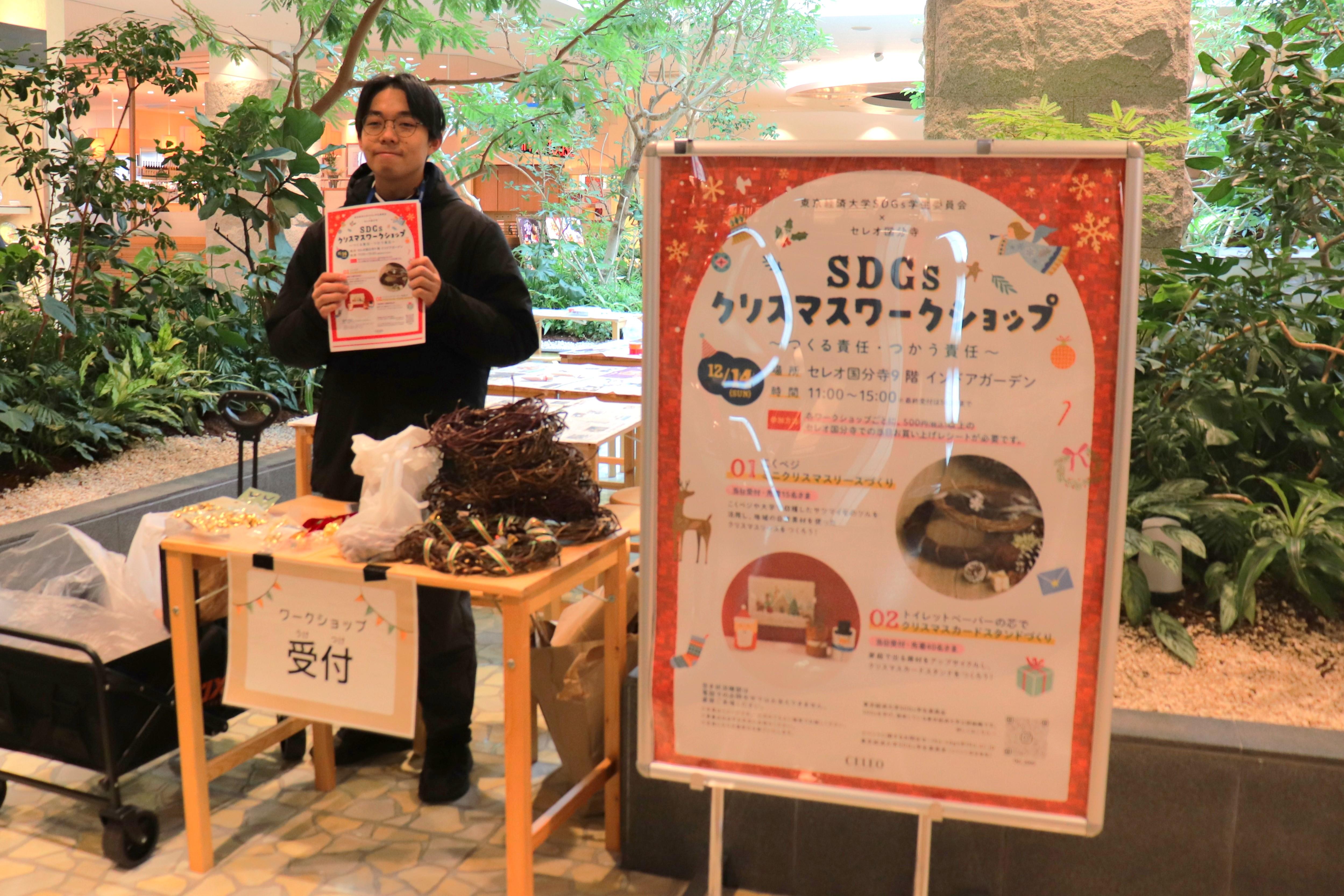 東京経済大学SDGs学生委員会は2025年12月14日(日)、セレオ国分寺9階インドアガーデンで「東京経済大学SDGs学生委員会×セレオ国分寺SDGsクリスマスワークショップ〜つくる責任・つかう責任〜」を開催しました。