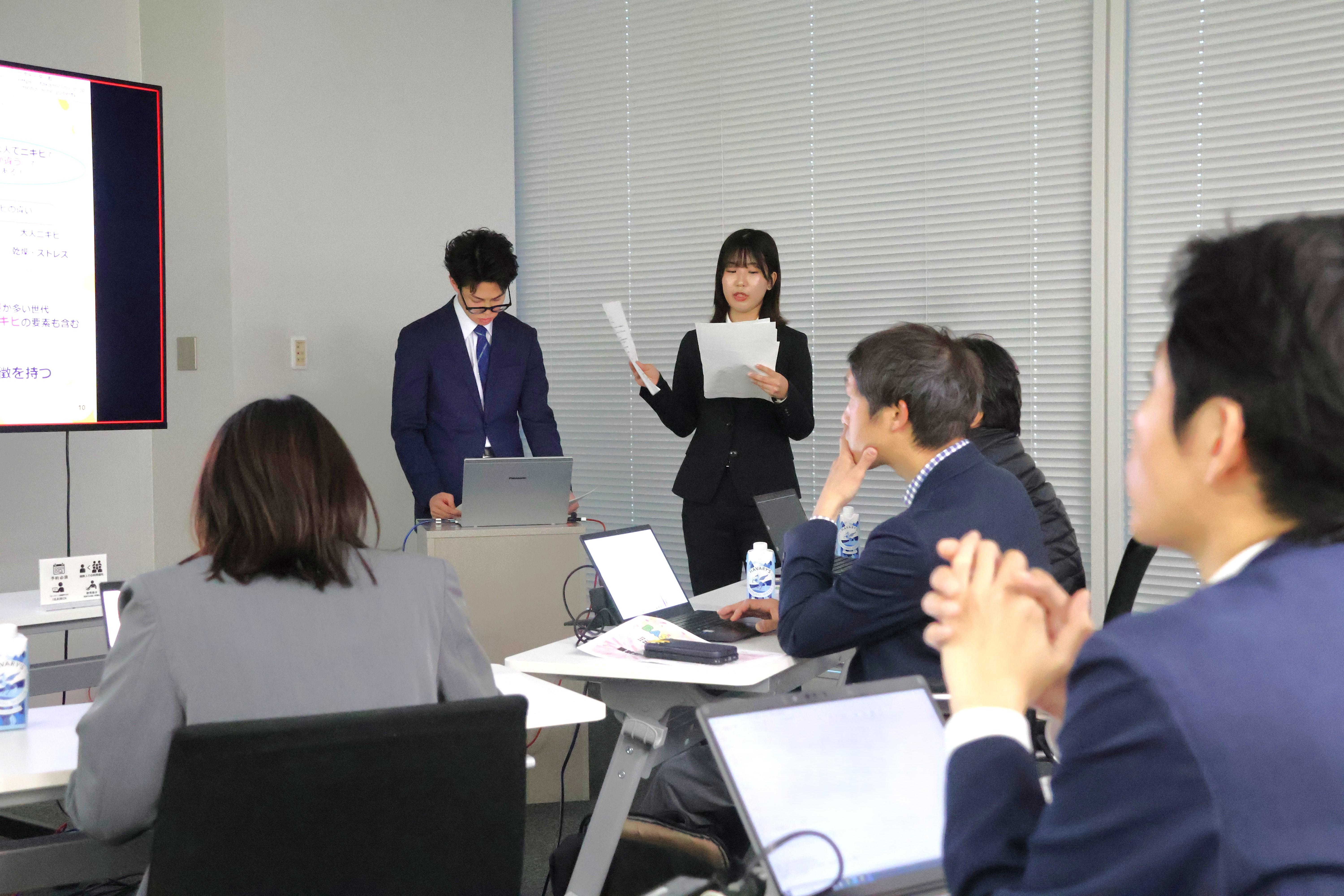 ゼミ長を務める茂呂幸奈さん(経営3年)は「今回は2年生がメインで発表する最初の機会で、4年生から学べる最後の機会でした。2年生が繰り返しプレゼンテーションの練習をしているのを見てきたので、素晴らしい発表ができてよかったです」と振り返り、前ゼミ長の稲葉駿樹さん(経営4年)は「後輩たちの成長スピードに驚かされました。頑張ってプレゼンテーションをしている姿を見て感動しました」と後輩への想いを語っていました。