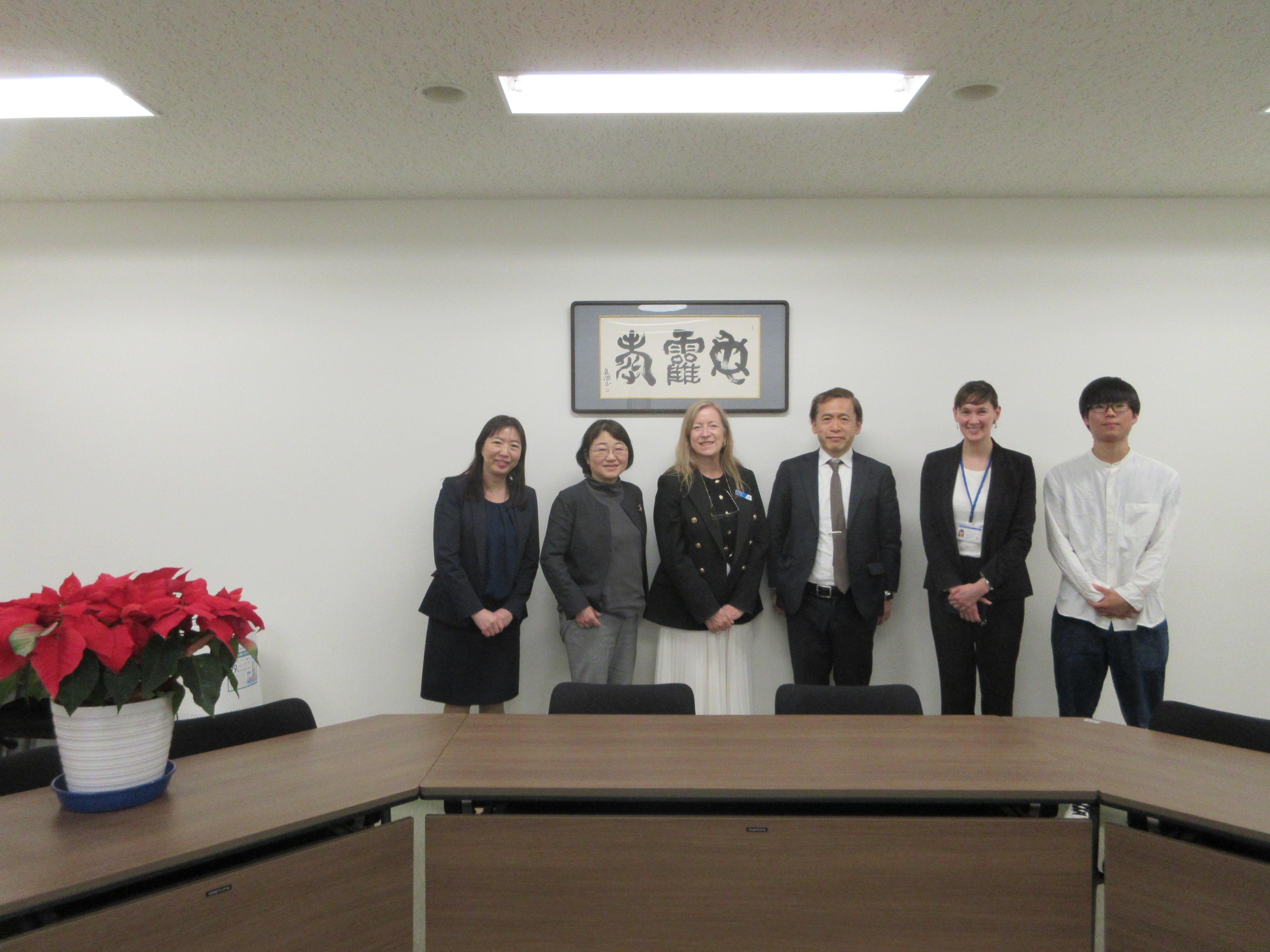 今回の懇談には関昭典国際交流委員長をはじめ、教職員4名と2月のプログラムに参加した増田暖大さん(経営1年)の計5名が参加しました。