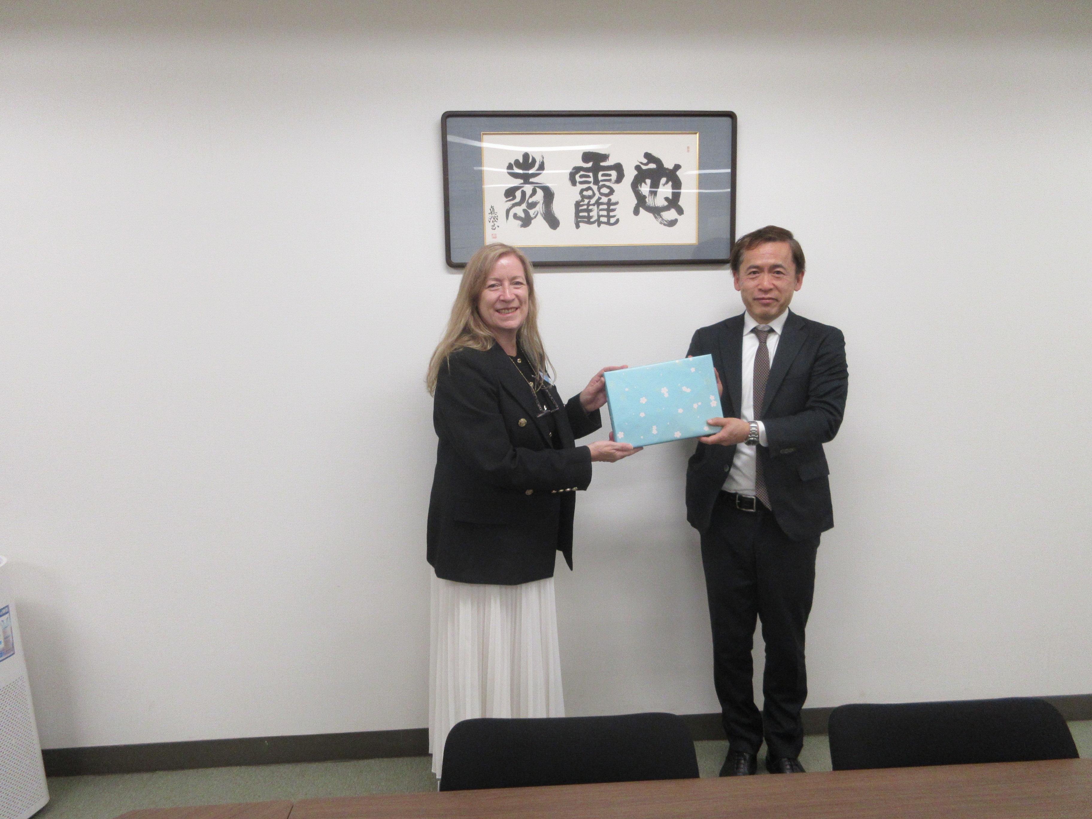懇談では「豪 マリオン・フリンダース地域交流プログラム」の研修先で本学協定校の1つであるフリンダース大学との学生交換協定の締結や、フリンダース大学の学生を本学に受け入れて交流を行う可能性などについて意見交換が行われました。