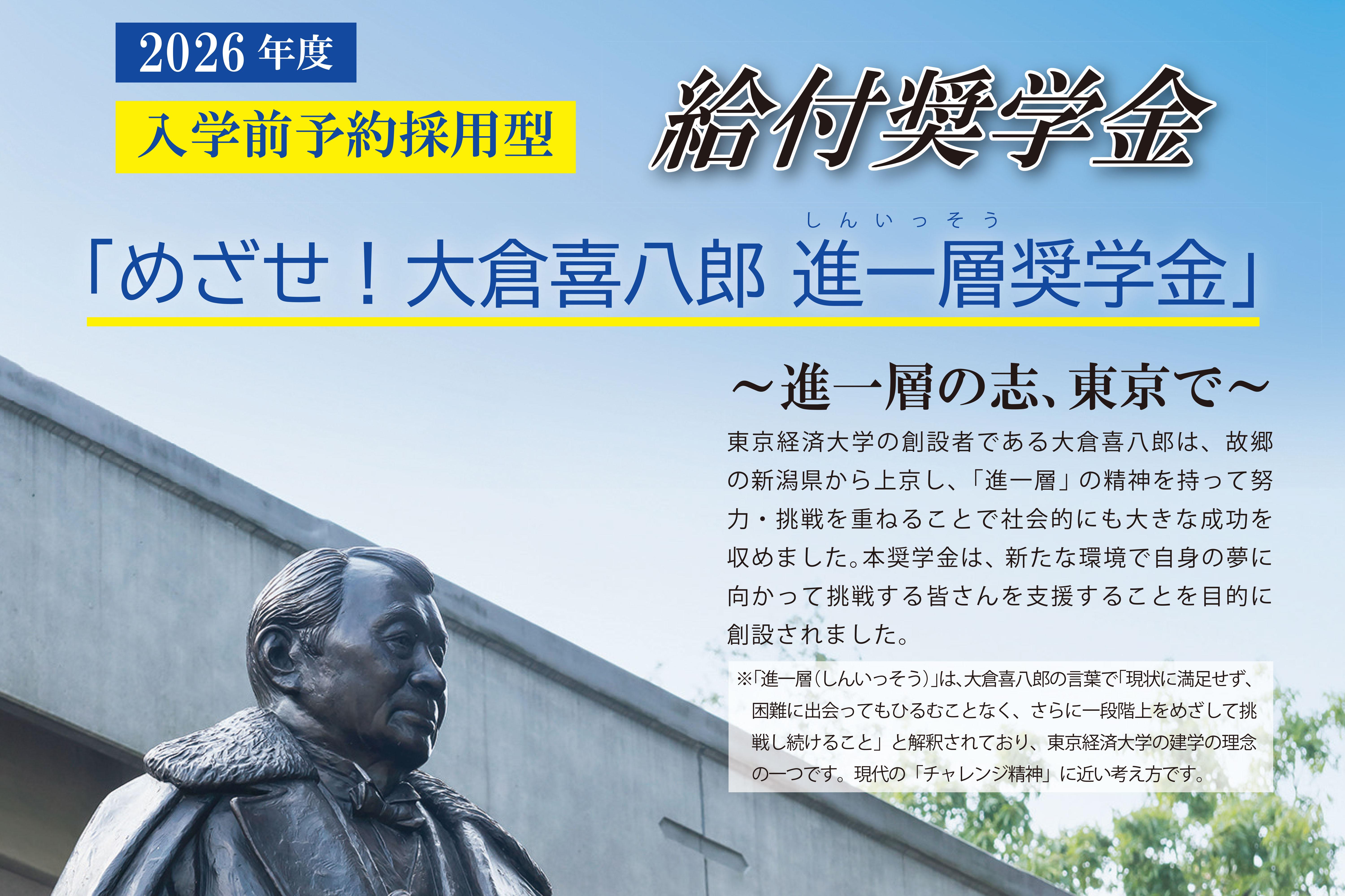 東京経済大学は、創立者・大倉喜八郎が建学において掲げてきた「進一層」と「責任と信用」――「責任と信用」を重んじる倫理観を持ち、さまざまな困難にも立ち向かう「進一層」の気概を持った人材の育成――の理念とともに、①「豊かで公正な社会」と「多様性を尊重する世界」への寄与、②「開かれた精神」と「自主自立の精神」の重視、③「堅実な品性」と「良識(コモンセンス)」の涵養、という3つの理念を1900年開学の「大倉商業学校」(戦後新制大学となる「東京経済大学」の前身)以来の伝統として、大切にしてきました。